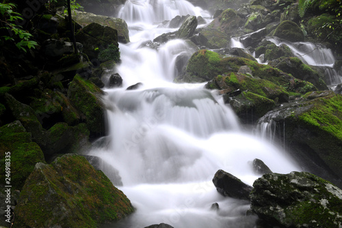 Fototapeta premium 숲속의 계곡과 강 이끼 냇물 자연풍경 백그라운드 이미지
