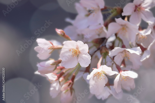Fototapeta premium 桜、ソメイヨシノアップ、丸ボケ背景