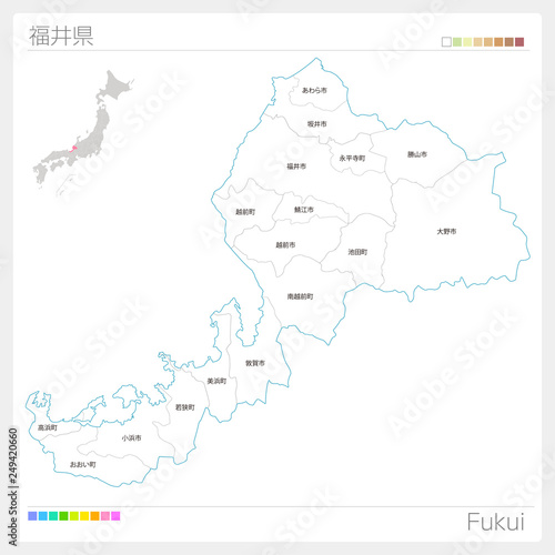 © tk2001, Obraz premium 福井県の地図(市町村・区分け)
