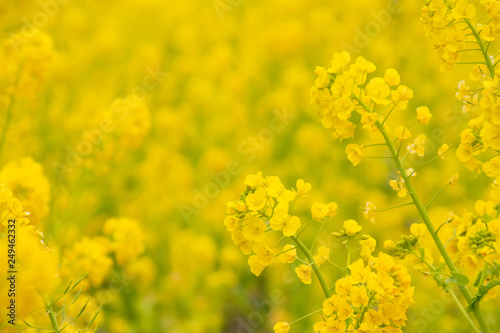 Obraz premium 満開の菜の花畑の黄色い菜の花