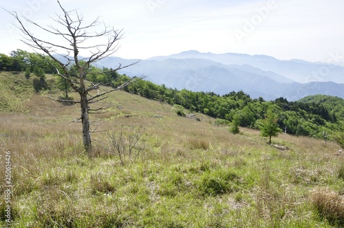 Obraz premium 乾徳山の高原と大菩薩連嶺を望む