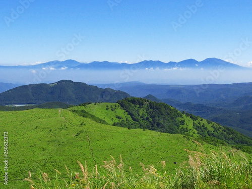 © mahalopuka, Fototapeta premium 初夏の草原、展望の峰々【霧ヶ峰高原と浅間山連山】