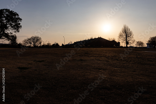 Obraz premium 【横浜シルエットシリーズ】日の出と横浜赤レンガ倉庫のシルエット