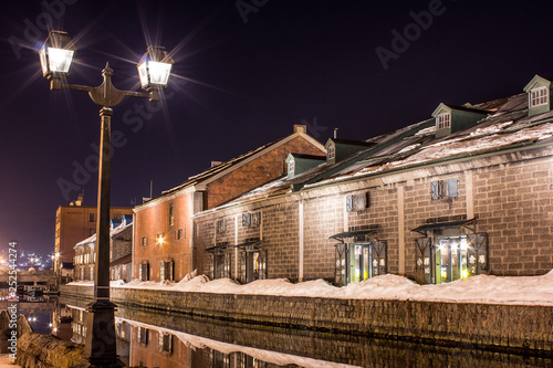 © bj_sozai, Obraz premium 小樽運河 夜景 ガス灯 冬