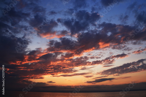 Obraz premium 北海道行きフェリー 北海道の海と夕陽