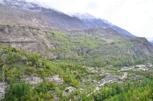 Obraz premium パキスタンのフンザの絶景 美しい山と村と森林