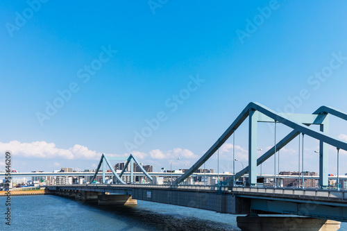 Obraz premium (東京都-都市風景)荒川岸から望む葛西橋と首都高速3