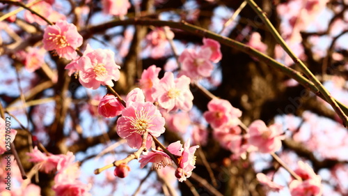 Obraz premium 夕日のしだれ梅 農業センター