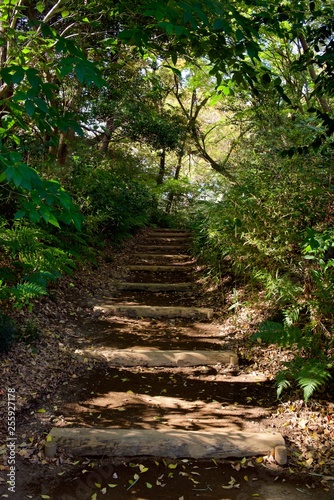 © nikomani, Obraz premium 六義園の木の階段