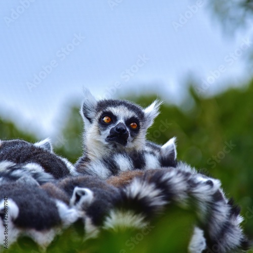 © Scott Mirror, Naklejka premium 集団で暖をとるワオキツネザル