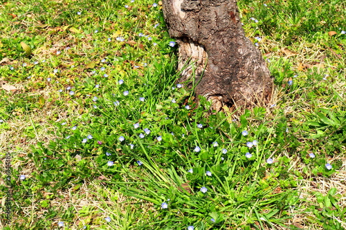 Fototapeta premium 花桃の木とオオイヌノフグリ