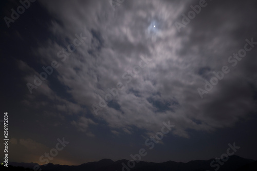 Obraz premium 躍動感のある雲に隠れた月と原っぱ