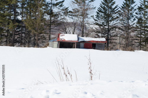 © ookinate23, Naklejka premium 雪原の古い家