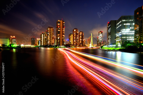 © masyok, Obraz premium 隅田川を走る屋形船の光跡