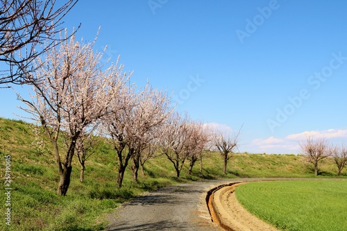 Obraz premium 風景 空 梅の花 道 田舎 とちぎ