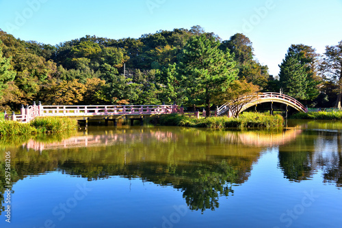 Fototapeta premium 快晴の池に映る称名寺の景色