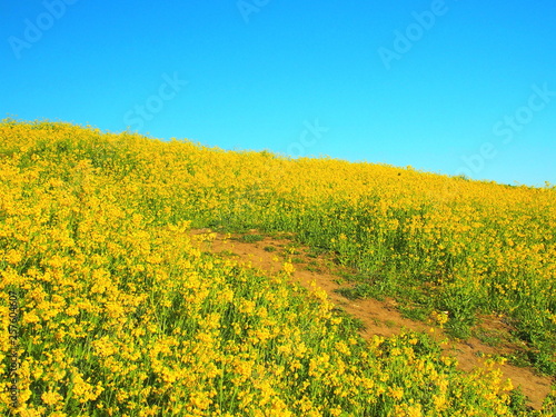 Obraz premium 菜の花咲く土手と小道