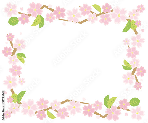 Naklejka premium 葉桜のサークルフレーム(白背景)