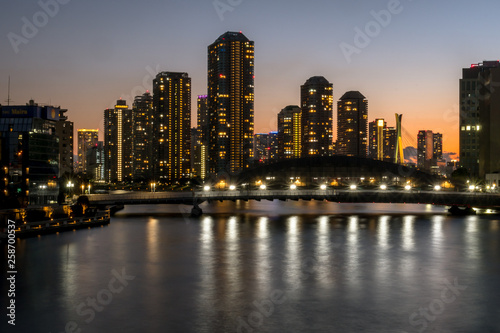 © onotorono, Fototapeta premium 東京の都市風景 工事中の永代橋と石川島の夜景3