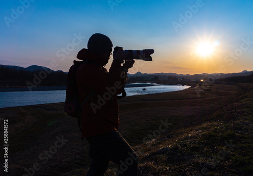 © amosfal, Obraz premium 美しい風景写真を撮影するカメラマンの男性