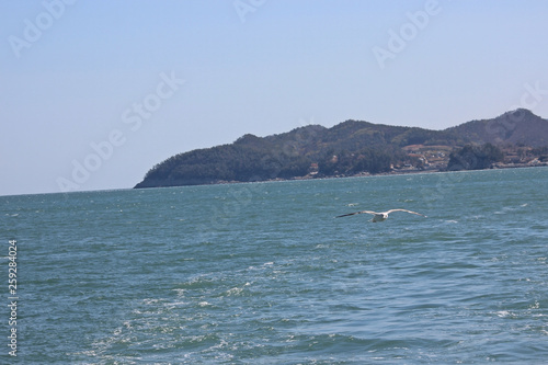 Obraz premium 바다 물위를 날으는 갈매기