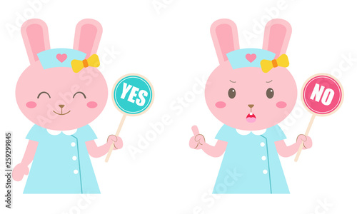 Obraz premium ウサギの看護婦さん イエスとノー マルバツ 回答 表情 セット