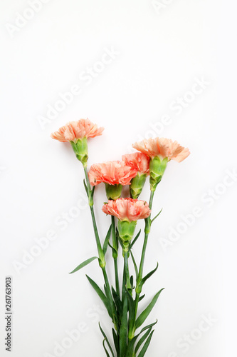 Obraz premium 아름다운 봄 꽃, 리빙코랄 컬러 카네이션,안개꽃,장미