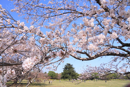 © wassei, Fototapeta premium 満開の桜の枝の中から見えた広場