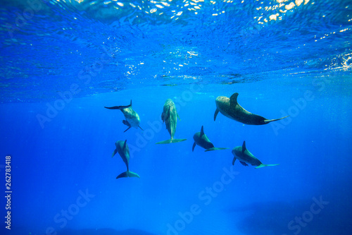 Obraz premium 小笠原の海を泳ぐミナミハンドウイルカの群れ