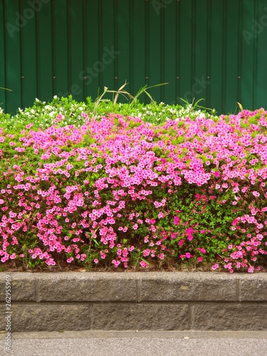 © smtd3, Fototapeta premium 壁と躑躅と歩道のある風景