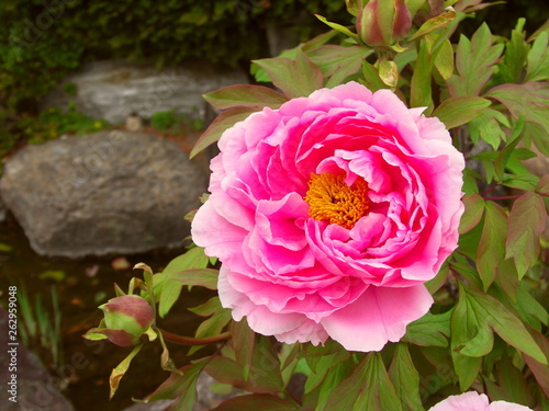 Fototapeta premium 水辺に咲く牡丹