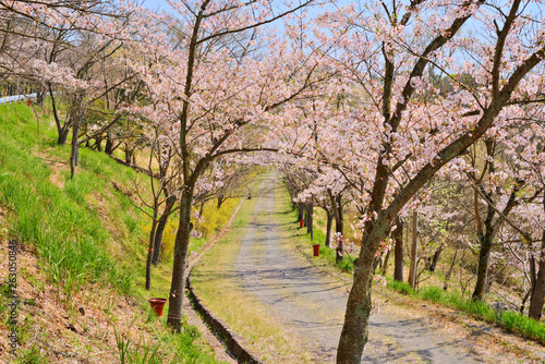 Obraz premium 桜並木と道