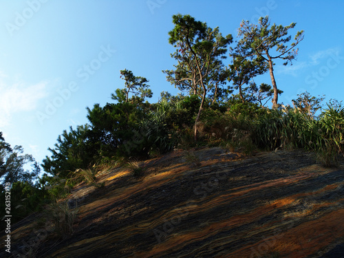 Obraz premium 青空と崖に生えた木