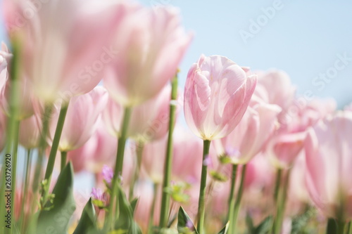 Fototapeta premium ピンク色のチューリップが咲きみだれる公園