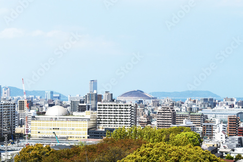 Fototapeta premium 福岡市の景色 ヤフオクドーム とプラネタリウム、能古島と志賀島,