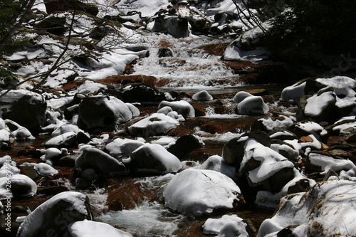 © RITSU MIYAMOTO, Fototapeta premium 早春 雪の八ヶ岳連峰 北沢のせせらぎ