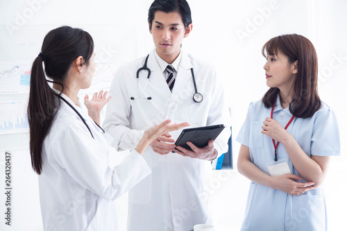 Fototapeta premium 医師と看護師が打ち合わせをしている様子
