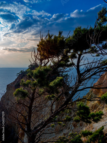 © Kazuhito Hiramatsu, Obraz premium 【伊豆半島ジオパーク】静岡県西伊豆黄金崎の夕景【冬】