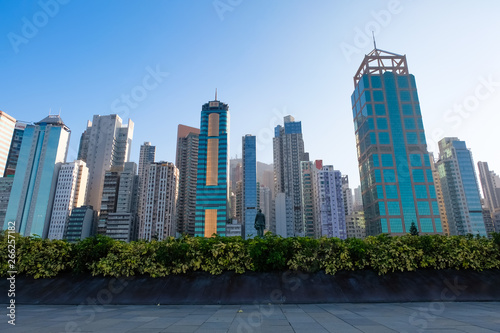 Obraz premium 香港 中山紀念公園と上環・西営盤の街並み