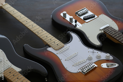 © Free1970, Obraz premium 黒い背景のサンバーストのエレキギター