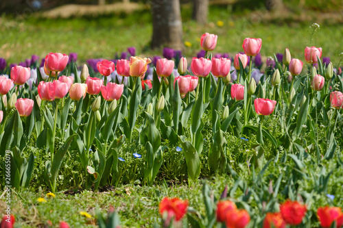 © Rummy & Rummy, Fototapeta premium チューリップ 赤 オレンジ色 花 馬見丘陵公園 奈良県
