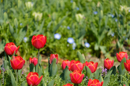 © Rummy & Rummy, Fototapeta premium チューリップ アドレム 赤 オレンジ色 黄色 花 馬見丘陵公園 奈良県