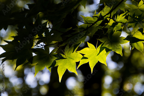 © kinpouge, Obraz premium 太陽の光を浴びる新緑の葉