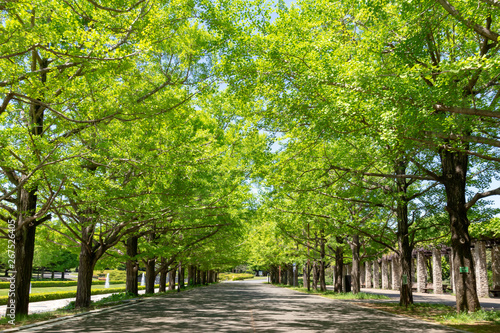 Fototapeta premium 昭和記念公園の新緑の銀杏並木
