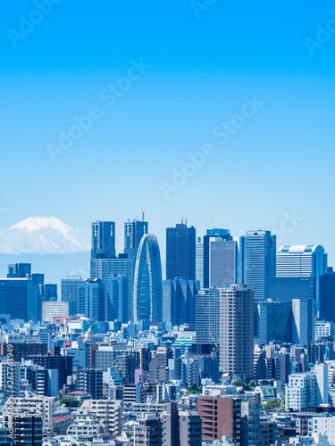 Obraz premium 富士山と新宿副都心の高層ビル 縦位置