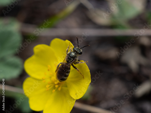 © Дмитрий Колеватов, Fototapeta premium лесная пчела на желтом цветке