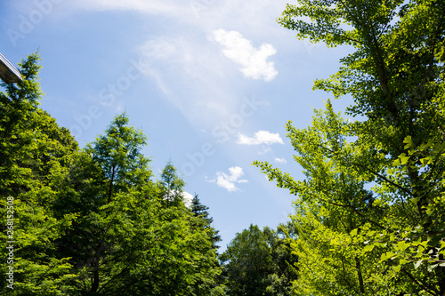 © kinpouge, Obraz premium 新緑の林と青空
