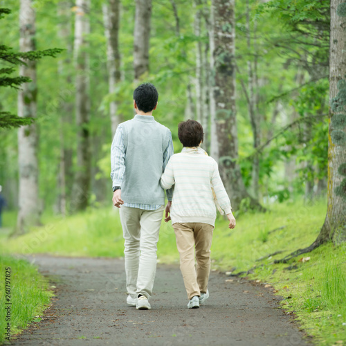© ohayou!, Fototapeta premium 一本道を歩くシニア夫婦の後姿