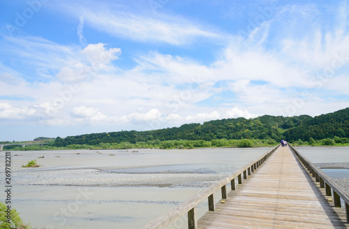 © Marimo, Fototapeta premium 蓬莱橋と大井川の風景(静岡県島田市)