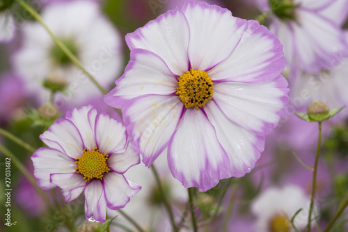 Obraz premium 雨とハイブリッドコスモス